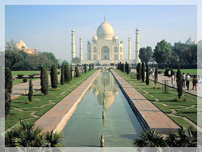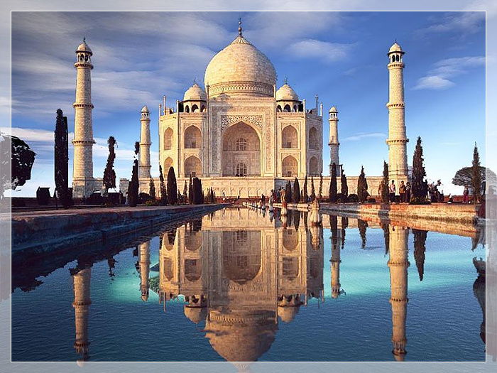 泰姬陵,是印度知名度最高的古迹之一,在今印度距新德里200多公里外的北方邦的阿格拉城内,亚穆纳河右侧。是莫卧儿王朝第5代皇帝沙贾汗为了纪念他已故皇后阿姬曼·芭奴而建立的陵墓,被誉为“完美建筑”。它由殿堂、钟楼、尖塔、水池等构成,全部用纯白色大理石建筑,用玻璃、玛瑙镶嵌,绚丽夺目。有极高的艺术价值。是伊斯兰教建筑中的代表作。2007年7月7日,成为世界新七大奇迹之一。
