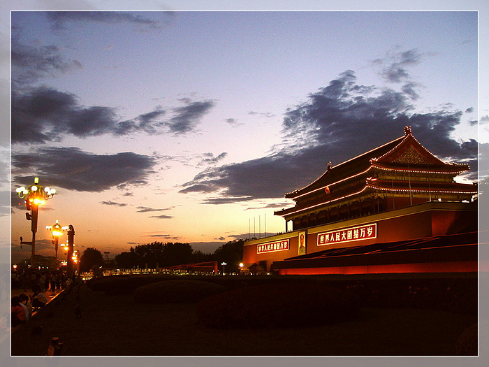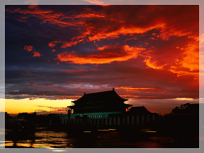 中 国 天安门,原作承天门,明天顺元年(1457年),承天门遭雷击起火被毁,当时没能立即恢复,直到成化元年(1465年),才由工部尚书白圭主持重建。这次重建,奠定了今日天安门的形制。清/顷治八年(1651年),清世祖福临下令大规模重建并更名承天门为“天安门”。天安门是中华文明悠久历史的象征,是目睹封建王朝兴衰更迭的历史见证人。