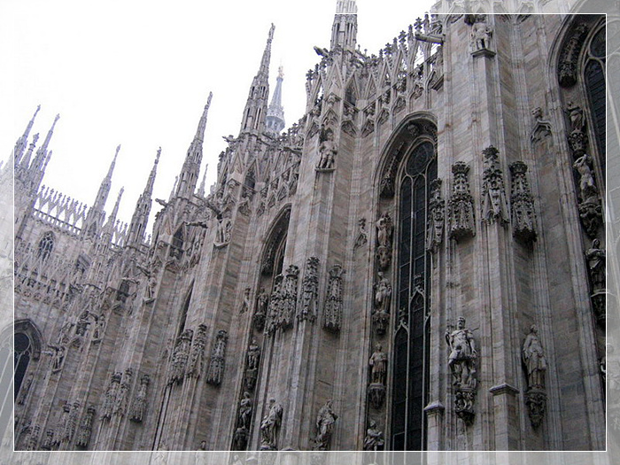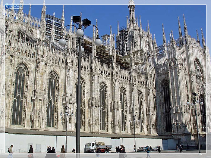 米兰大教堂,雄踞在意大利米兰市中心的米兰大教堂亦称圣母降生教堂,于公元1386年开工建造,1897年完工,历时五个世纪。融入了古希腊、罗马及多种民族的建筑风格,是世界上最大的哥特式教堂,也是规模仅次于梵蒂冈圣彼得大教堂的世界第二大教堂。教堂长158米,最宽处93米。塔尖最高处达108.5米。总面积11700平方米,可容纳35000人。