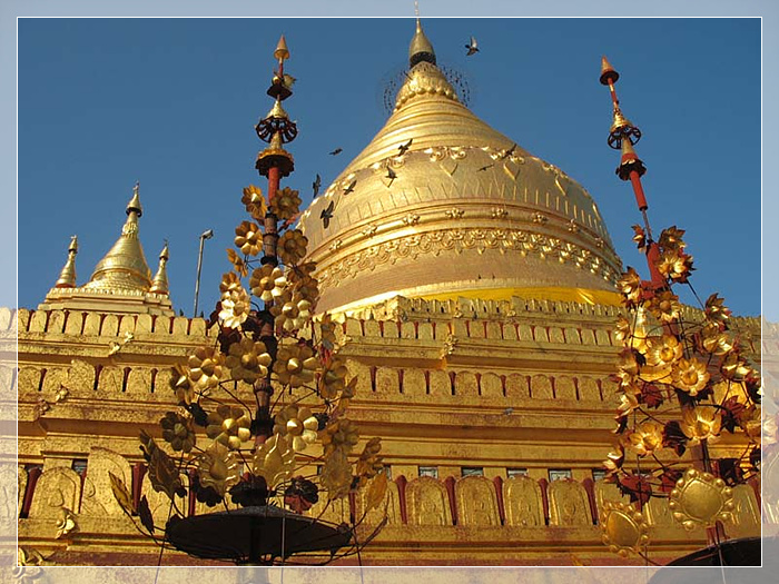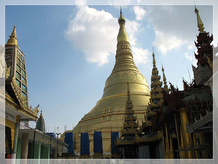 仰光大金塔,是一座位于仰光的窣堵坡(佛塔)。其高度为98米,表面则铺上了一层金,它是缅甸最神圣的佛塔,因为它供奉了四位佛陀的遗物,包括是拘留孙佛的杖,正等觉金寂佛的净水器,迦叶佛的袍及佛祖释迦牟尼的八根头发。缅甸人称大金塔为“瑞大光塔”,“瑞”在缅语中是“金”的意思,“大光”是仰光的古称,缅甸人把大金塔视为自己的骄傲。