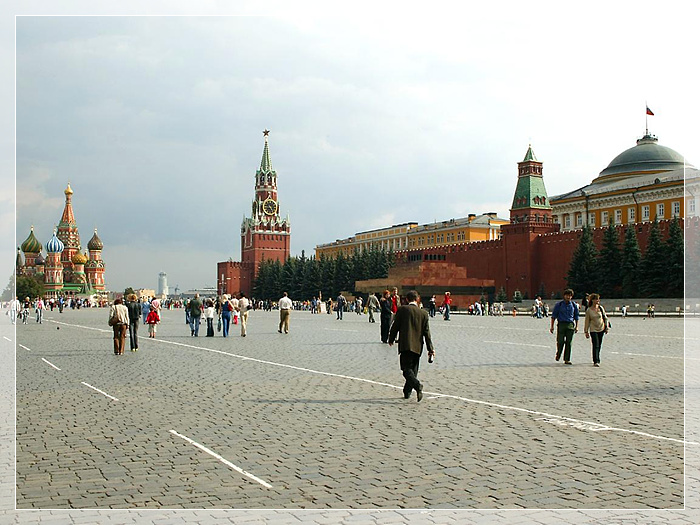 红场,是俄罗斯首都莫斯科市中心的著名广场,位于莫斯科市中心,西南与克里姆林宫相毗连。原是前苏联重要节日举行群众集会和阅兵的地方。平面长方形,面积约4公顷。红场的地面很独特,全部由条石铺成,在红场的西侧是列宁墓和克里姆林宫的红墙及三座高塔,在列宁墓与克里姆林宫红墙之间,有12块墓碑,包括斯大林、勃列日涅夫、安德罗波夫、契尔年科、捷尔任斯基等前苏联政治家的墓碑。
