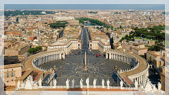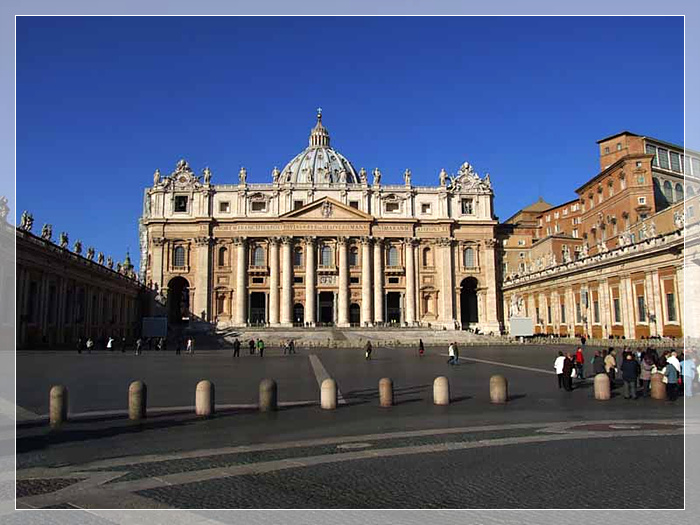 圣彼得大教堂,罗马基督教的中心教堂,欧洲天主教徒的朝圣地与梵蒂冈罗马教皇的教廷,是全世界第一大教堂。由君士坦丁大帝于公元326-333年在圣彼得墓地上修建的,称老圣彼得大教堂,于西元326年落成。总面积2.2万平方米,主体建筑高45.4米,长约211米,最多可容纳近6万人同时祈祷,只不过必须衣冠整齐并通过安检才可以进入教堂。