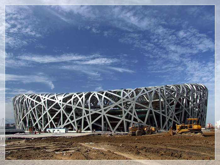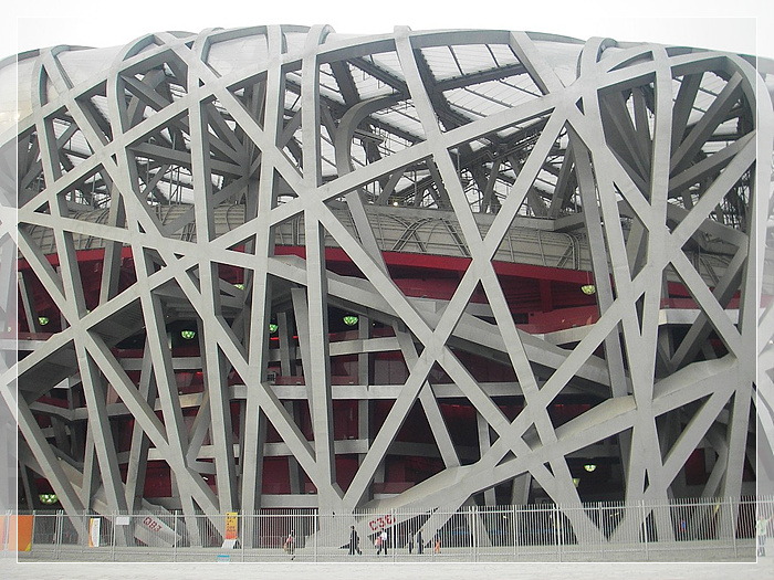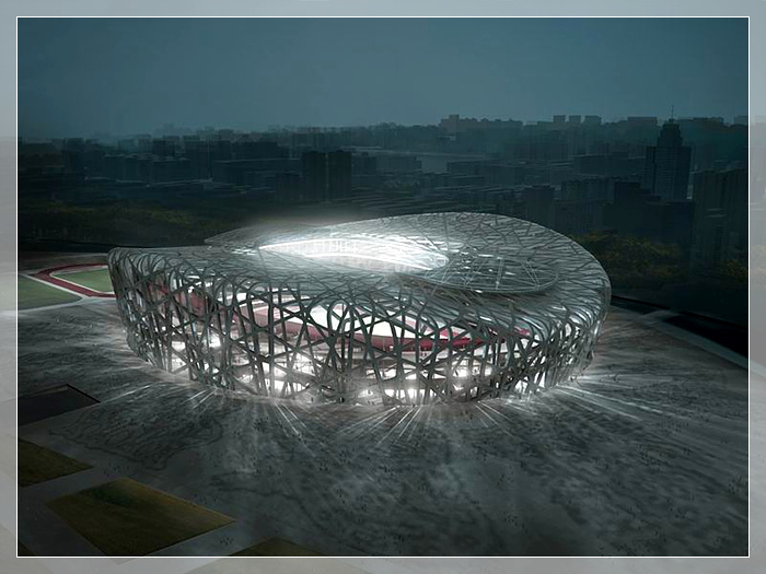 鸟巢,第29届奥林匹克运动会的主会场,位于北京奥林匹克公园内、北京城市中轴线北端的东侧。建筑面积25.8万平米,用地面积20.4万平米。2008年奥运会期间,承担开幕式、闭幕式、田径比赛、男子足球决赛等赛事活动,能容纳观众10万人,其中临时坐席2万座。奥运会后,可容纳观众8万人,可承担特殊重大体育比赛、各类常规赛事以及非竞赛项目,并将成为北京市提供市民广泛参与体育活动及享受体育娱乐的大型专业场所,成为全国具有标志性的体育娱乐建筑。