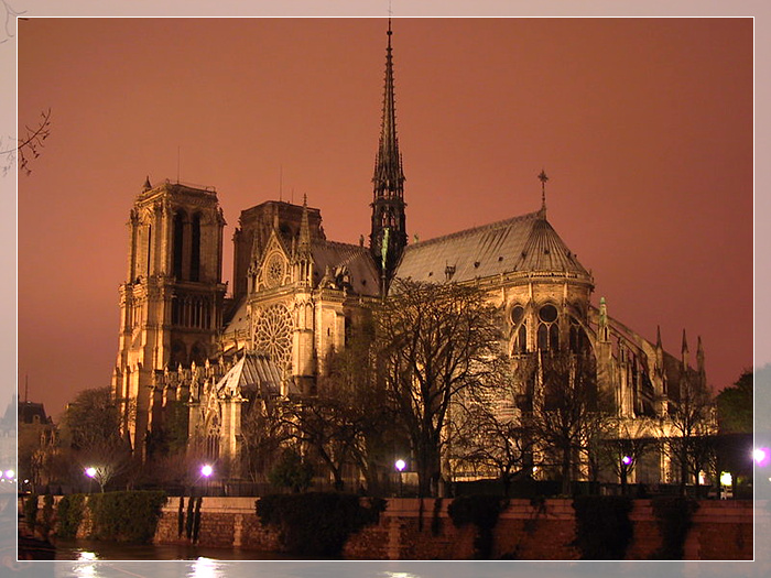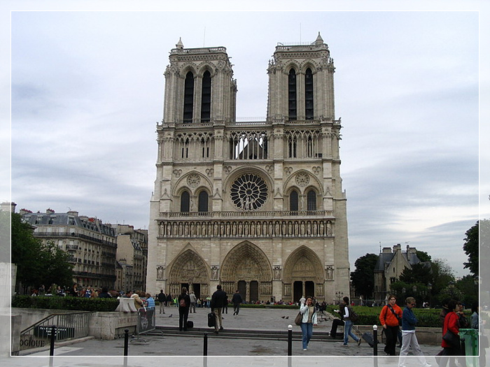 巴黎圣母院,法国天主教大教堂。位于巴黎塞纳河中城岛的东端,始建于1163年,1320年落成。该教堂以其哥特式的建筑风格,祭坛、回廊、门窗等处的雕刻和绘画艺术,以及堂内所藏的13~17世纪的大量艺术珍品而闻名于世。虽然这是一幢宗教建筑,但它闪烁着法国人民的智慧,反映了人们对美好生活的追求与向往。
