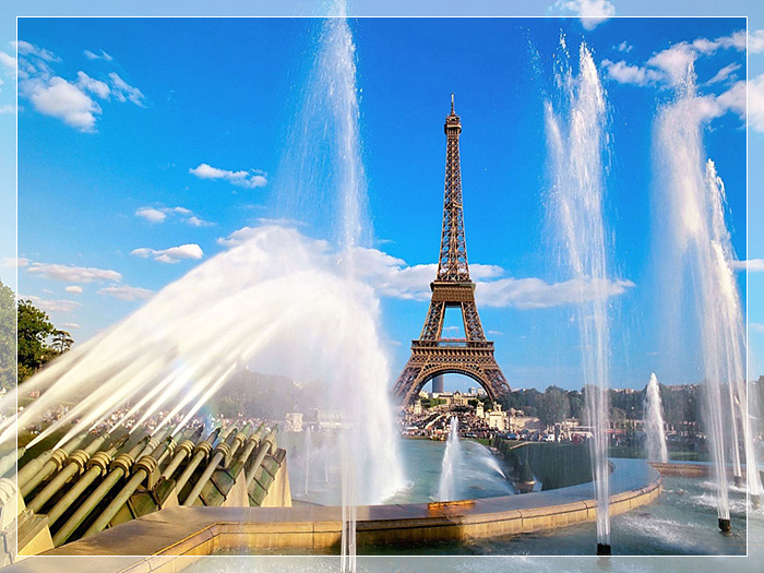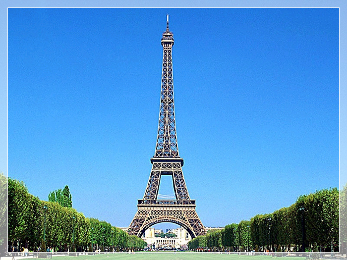 法国 埃菲尔铁塔,是巴黎的标志之一,被法国人爱称为“铁娘子”,耸立在巴黎市区赛纳河畔的战神广场上。除了四个脚是用钢筋水泥之外,全身都用钢铁构成,塔身总重量7000吨。塔分三层,除了第三层平台没有缝隙外,其他部分全是透空的。从塔座到塔顶共有1711级阶梯,现已安装电梯,故十分方便。每一层都设有酒吧和饭馆,供游客在此小憩,领略独具风采的巴黎市区全景:每逢晴空万里,这里可以看到远达70公里之内的景色。