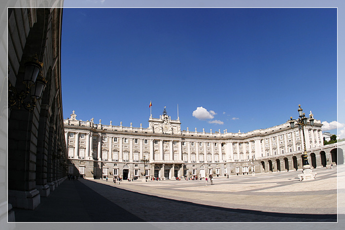 马德里皇宫,是仅次于凡尔赛宫和维也纳皇宫的欧洲第三大皇宫。它建于1738年加尔罗斯三世,历时26年才完工。是世界上保存最完整而且最精美的宫殿之一。它是波尔梦王朝代表性的文化遗迹,其豪华壮丽程度,在欧洲各国皇宫中堪称数一数二。