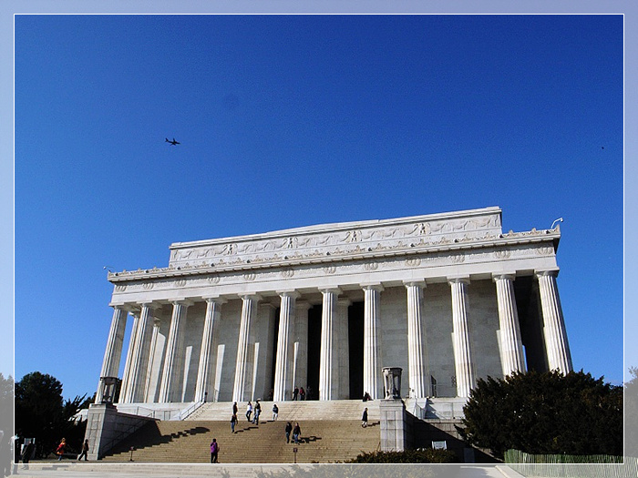 林肯纪念堂,是华盛顿最受欢迎的景点之一。纪念堂气氛庄严,鼓舞人心。已故总统林肯可能是最受尊敬的美国总统之一,人民不会忘记他对美国作出的贡献──解放奴隶和维护美国统一。 也正是他从社会最低层看出奴隶制的丑恶,揭穿"人人生来平等"的虚伪面纱。 虽然他被残酷暗杀,但他的精神将永存林肯纪念堂中。