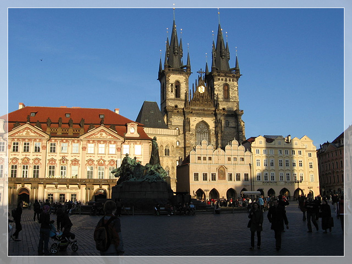 布拉格广场,入夜的布拉格如同一个精灵的城市。旧式马车载着好奇的游客穿梭在广场,马蹄撞击着石板路发出清脆的得得声;城堡的阁楼忽明忽暗闪烁的灯火,仿佛故事里的公主会随时出现在窗口;酒馆里嘈杂的音乐和清脆的玻璃杯的碰撞声,让人感到温暖与亲切。此时仿佛置身在中世纪的欧洲,抑或是一个童话的世界,游人会本能地忘却时间的存在,掉进了时空隧道迷失在布拉格广场。