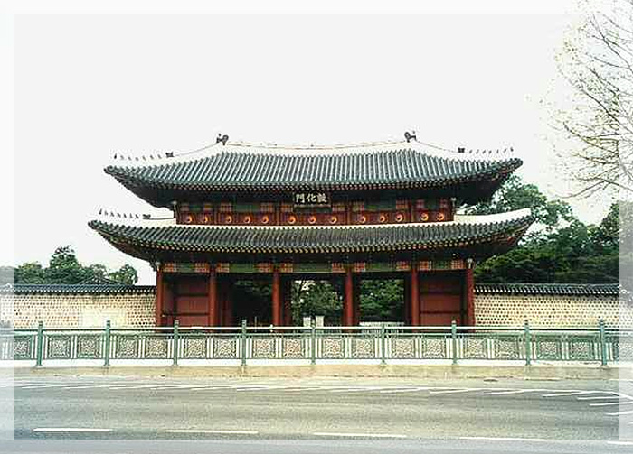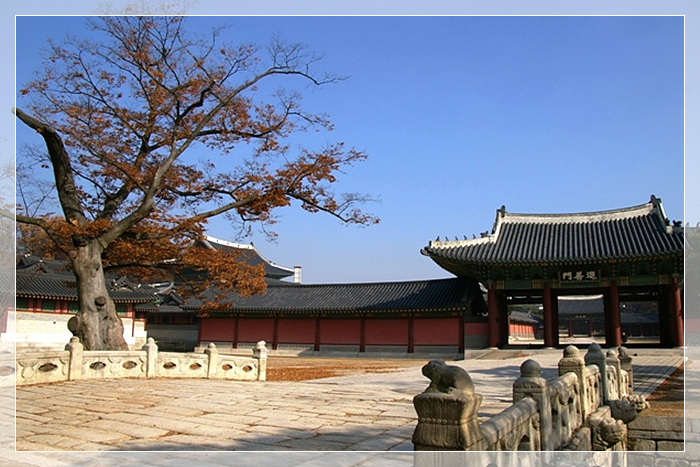 昌德宫,又名乐宫。无论你到昌德宫的哪个区域,首先惊叹于隐含在其中的无限的和谐感和能突出表现其中的每个细节而且相互连接的韵律和调律方式,更为之惊叹的是涌上心头的只能意会不能言传的心绪。所有的建筑是庭院的一角,庭院便是自然。1997年被联合国教科文组织列入《世界文化遗产名录》。