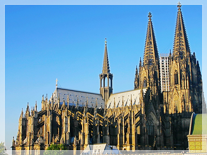科隆大教堂,始建于1248年,一直到1880建成,经过了七个世纪,它先后的建筑者都持有同样的信仰,而且绝对忠诚于原定计划。除了它自身特有的价值和其包含的艺术价值外,它还表现了欧洲基督教的力量和耐力。它以轻盈、雅致著称于世,是中世纪欧洲哥特式建筑艺术的代表作,也可以说是世界上最完美的哥特式教堂建筑。它在第二次世界大战中被破坏,随后在以后的几年内被完好的修复。
