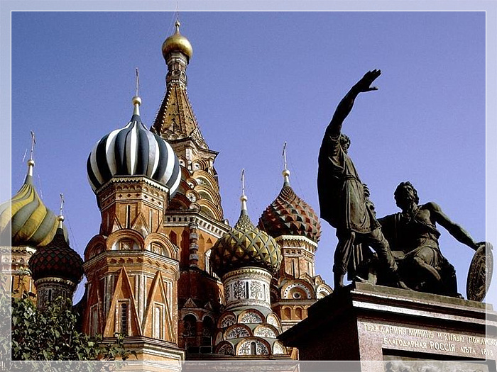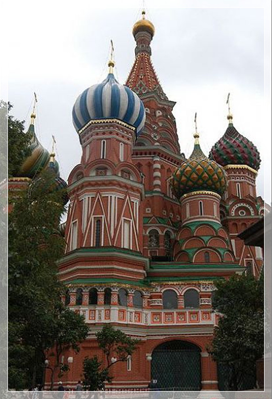 圣巴西利亚大教堂,莫斯科圣巴西利亚大教堂,是为纪念1552年“伊凡雷帝”胜利占领喀山而建。传说1560年教堂竣工后,伊凡弄瞎了所有参与兴建该教堂的建筑师,因为他不想让他们建出比该教堂更富丽堂皇的建筑。