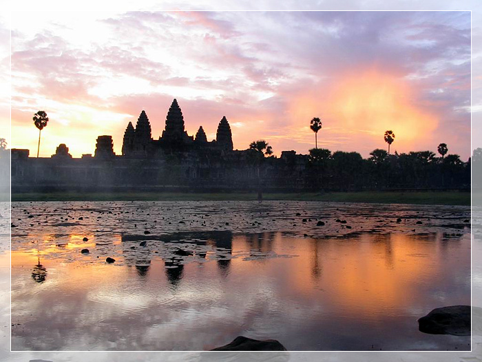 吴哥窟,又称吴哥寺,位在柬埔寨西北方。它是吴哥古迹中保存得最完好的的庙宇,以建筑宏伟与浮雕细致闻名于世,也是世界上最大的庙宇。1992年,联合国将吴哥古迹列入世界文化遗产,此后吴哥窟成为柬埔寨旅游胜地。一百多年来,世界各国投入大量资金在吴哥窟的维护工程上,以保护这份世界文化遗产。吴哥窟的造型,已经成为柬埔寨国家的标志,展现在柬埔寨的国旗上。