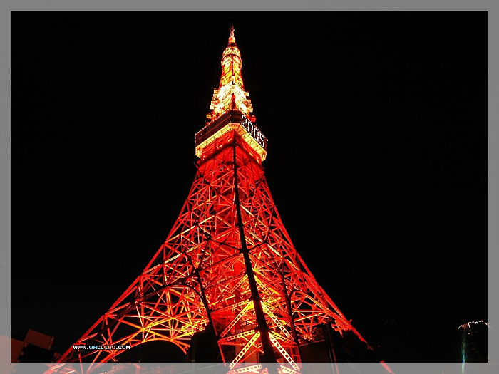 大家知道了我为什么要编辑这6个建筑吗?寓意:希望在中央的领导下,可以祖国统一,经济持续发展,在奥运年,中国一定大放光彩!! 第二站--日本 东京塔,这座日本最高的独立铁塔是东京的最高点。诞生以前,世界上第一高塔是法国巴黎的艾菲尔铁塔,但东京塔超过它13米,高达333米。而所使用的建筑材料却只有艾菲尔铁塔的一半,造塔费时一年半,还不到艾菲尔铁塔施工时间的三分之一。用这样少的材料和这样短的时间,平地竖起这座防台风、抗地震的庞然大物,震惊了全世界。东京塔1958年12月建成。1968年7月对游客开放。