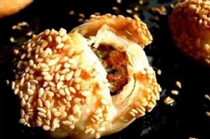 蟹壳黄因其形圆色黄似蟹壳而得名。其实苏州很多地方蟹壳黄很有名:雅都啦,山塘街啦。。但是最好吃的永远不是最大众的,苏州最王牌的蟹壳黄是在景德路黄鹂坊桥菜场附近,一家小小的饼店,永远是门庭若市。发酵面加油酥制成皮加馅的酥饼,精心烘焙而出,呈褐金黄色,吃口酥、松、香,饼色与形状酷似煮熟的蟹壳。
