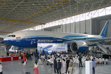 今天的“再下西洋--波音777-200LR环球之旅暨纪念郑和下西洋600周年”庆典活动,包括在北京飞机维修工程有限公司(AMECO)位于首都机场亚洲最现代化的四机位机库举行的“郑和号”揭幕仪式,得到了来自由交通部牵头的郑和下西洋600周年纪念活动筹备领导小组、国务院新闻办、外交部、民航总局等政府部门、航空公司及中外媒体两百多人的大力支持。
