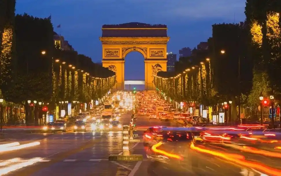 香榭丽舍,闻其名就感受到一种浓浓的诗情画意。虽说是法语的中译名,但香榭丽舍大街的确是一个风格独异,融法国悠久历史文化和现代气息于一体,是值得一览的地方。香榭丽舍大街是巴黎最为繁华、而风景又极为特殊的主要街道。它西起戴高乐星形广场,东至协和广场,全长约1800米。街道两边店铺林立,橱窗里的商品琳琅满目,甚为豪华气派。大街的西段集中了诸如法国航空公司、法兰西商业信贷银行和奔驰、雪铁龙等名牌轿车公司的展厅,汇聚了一些著名的香水店、夜总会和快餐店,可称得上是商贾云集。大街的东段则是花园锦簇、鸟语花香,协和广场与绿树成荫、艺术气息浓郁的卢浮宫毗邻,呈现一派恬静自然的风光。香榭丽舍大街除了拥有优越的四车道外,街道两边还各有10-20米宽的步行道。茂密的梧桐树沿街排列,郁郁葱葱,在夹杂着浓烈的香水味的空气中,使人顿时产生一种心旷神怡的感觉。香榭丽舍大街的两端是一些历经沧桑的历史古迹。著名的凯旋门就矗立在大街西段星形广场的中央。1806年,拿破伦为了炫耀战功,决定修建凯旋门。而凯旋门历经30年的风雨后才得以与世人见面。以后,每年法国的国庆阅兵式和一些盛大庆典活动就从这里开始。东段有建于1757年的协和广场,广场中央竖立着据说19世纪30年代从埃及运来的一座高23米的方尖碑。