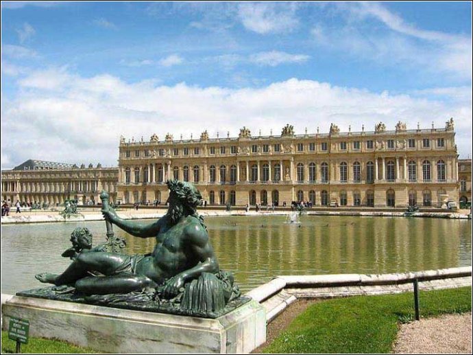 凡尔赛宫建成于1624年,位于巴黎城西,包括:城堡、御花园、教堂和镜廊,面积庞大,是欧洲皇宫中最气派、最宏大、最华丽、最庄严的一个。宫内存放着来自世界各地的艺术珍品。宫殿主体长707米,有数百间大小不等的厅殿、皇宫,豪华非凡。其御花园是欧洲园林的典范,园内有许多闻名世界的喷泉、雕塑。