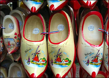 木鞋同风车一样,是荷兰人在同大自然的搏斗中适应地理环境的产物。于荷兰大部分国土海拔太低,欧洲许多大河经荷兰入海,又受全年湿润的温带海洋性气候影响,几乎一半的土地浸泡在水中,正是由于这样的条件,促使荷兰人在几百年前就发明了木鞋。据说脚穿坚硬的木鞋在淤泥地行走特别轻巧利落。制作木鞋完全是鞋匠的活儿,确切地说是雕刻匠的活儿,因为一只木鞋完全是在一块完整的木头上镂刻出来的。据介绍,制作木鞋的木料为白杨,只有4至6年生的白杨树上的某一段木料制作的木鞋才具有不易劈裂、不变形、不渗水、不沾泥、透气等特性。
