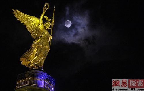 2008年10月13日德国柏林“灯节”进行预演,柏林胜利纪念塔(Berlin Siegessaeule)被灯光照亮,其他包括街道、广场、塔楼、现代大厦等首都的其他各标志性建筑,也在灯光的照耀下显得格外迷人