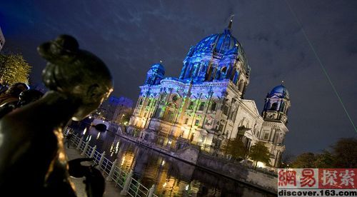 2008年10月14日,开幕之夜上,灯光把柏林标志性建筑-柏林大教堂(Berlin Cathedral )装饰得五颜六色