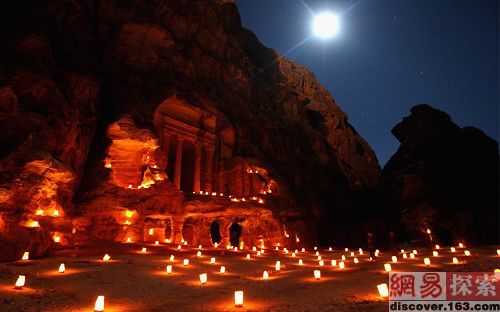 “Salute Petra ”活动是为了纪念世界著名“高音之王”-鲁契亚诺-帕瓦罗蒂(Luciano Pavarotti),在每年其音乐会。图片为晚宴时一古代寺庙前摆放着无数蜡烛的盛景