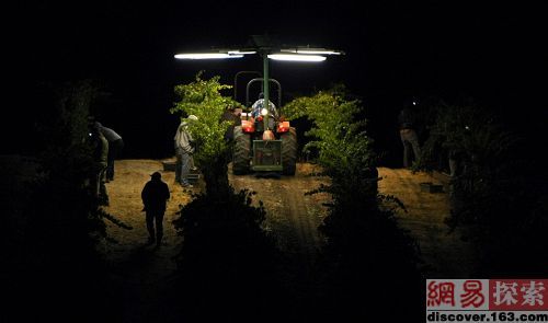 9月17日,在加利福尼亚圣赫勒拿(St. Helena)的萨诺维酒庄(St. Supery Winery)外赤霞珠葡萄园外,工人们正在对其进行布置