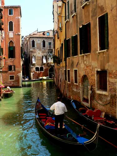 美国女作家玛丽麦卡西这样描述:威尼斯原本是个弃儿,犹如被遗弃在篮中的摩西,在芦苇中随波逐流,感谢她被人发现、被入侵、被发展。的确,威尼斯是一个充满自由与信仰的城市,建城于公元421年3月21日,公元568年,大批贵族从意大利本土迁移到威尼斯,公元1200-1270年,威尼斯成为世界第一强国。然而她的魅力并不是她那曲折的历史,曾经的荣光,而是包围着她、环绕着她、穿越过她的灵动之水。在文艺复兴的建筑风格引诱下经过那些建筑工匠慧心巧智修建起来,她不是建在水上而是建在水里。千百年过了,现在的威尼斯丰采依旧,名动世界。运河旁排列著名的府邸令人注目。坐在手摇的贡多拉船上,听着船夫歌声,穿越阡陌纵横的水道,浪漫百分之百。水岸边一个个悠闲漫步的身影,各式各样繁复雕花的石材宅邸、宫殿,从眼前缓缓经过。