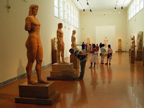 第15室的海神波赛顿铜像(Poseidon of atremision),第21室的少年和马(Horse and Jockey Of a-remision),和左侧依年代展示的Kouroi站立人介,都是不可错过的收藏。