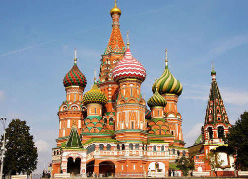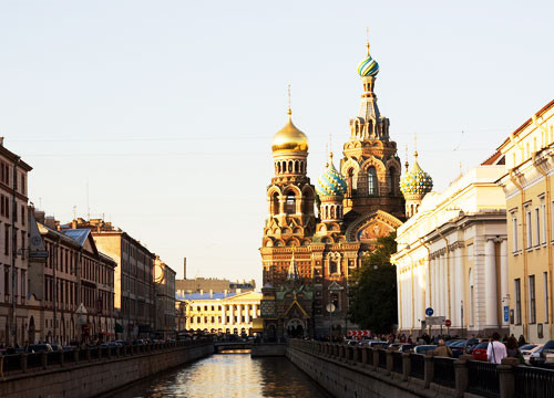 在俄罗斯,最常见的历史文化建筑非东正教教堂莫属。无论从规模还是建筑形式上,俄罗斯的教堂都是空前的,其中以莫斯科和圣彼得堡的教堂为最。其中,瓦西里升天教堂和滴血大教堂是必到之点。圣瓦西里升天大教堂坐落在在红场一角,是俄国沙皇伊凡雷帝为庆祝战胜喀山鞑靼军队而建。这座有着像洋葱一样圆顶的大教堂,其富于创意的形式、色彩与结构的完美结合,使之被誉为“一个石头的神话”。滴血大教堂具有典型的俄罗斯东正教教堂建筑的特点,其结构繁复,色彩绚丽,既吸纳了西欧近代建筑的技术和文化要素,又有十分明显的东方艺术风格,是一座艺术宝库。