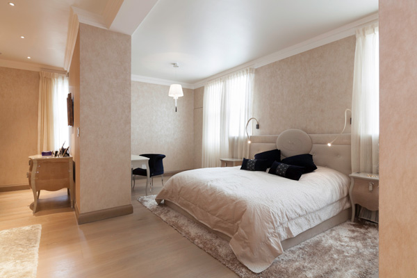 5间大卧室和5间卫浴室也同样奢华敞亮。最大的总统卧室套房享有内部独立会客厅、独立卫浴间和2间更衣室。夜间休息区也同样采用中性色调家私和装饰。维多利亚风格的住宅楼高窗为主人带来无障碍观景视角,窗外靓丽的皇家园林肯辛顿公园景观为豪宅带来无限的增值空间。而后身不远处,又是Westbourne Grove 名品商业街,不愧为伦敦黄金地段上的物业臻品。