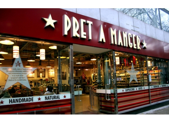 Pret a Manger - 英国本土的三明治店。店名由法文“prêt à manger”得来,英文翻译为“ready to eat”,意思为“即刻食用”。他们的法棍三明治质量很高,味道可口,也很新鲜。除此之外还有热汤、wrap、寿司、可颂面包、麦芬蛋糕等提供。高街上连锁店很多。
