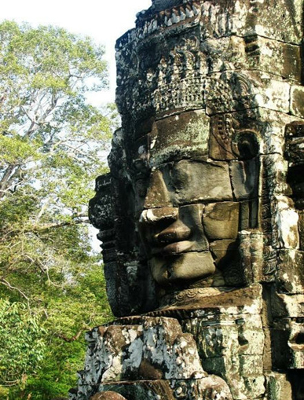 吴哥城是高棉帝国最后一座都城,城墙的四周佛像层叠起伏,令人肃然起敬。组成佛像的巨石之间,以一种混合棕榈汁粘合,经过七、八百年的风吹、日晒、雨林,至今依然坚实合缝,这不仅显示了古代高棉国王的财富和权势,也反映出其国民精湛的技术和艺术才能。