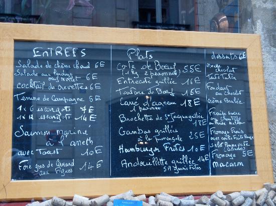 好餐馆离不开好菜单。如何判断菜单的好坏呢?好的厨师为了味道鲜美,会随着季节的变换更替自己的菜。可以信赖那些用石板、粉笔书写自家餐谱的餐馆。菜单看上去要轻爽、明了、简扼明要。在橱窗上布满彩色图片菜谱的餐馆采用的手法基本上是工业化食品。