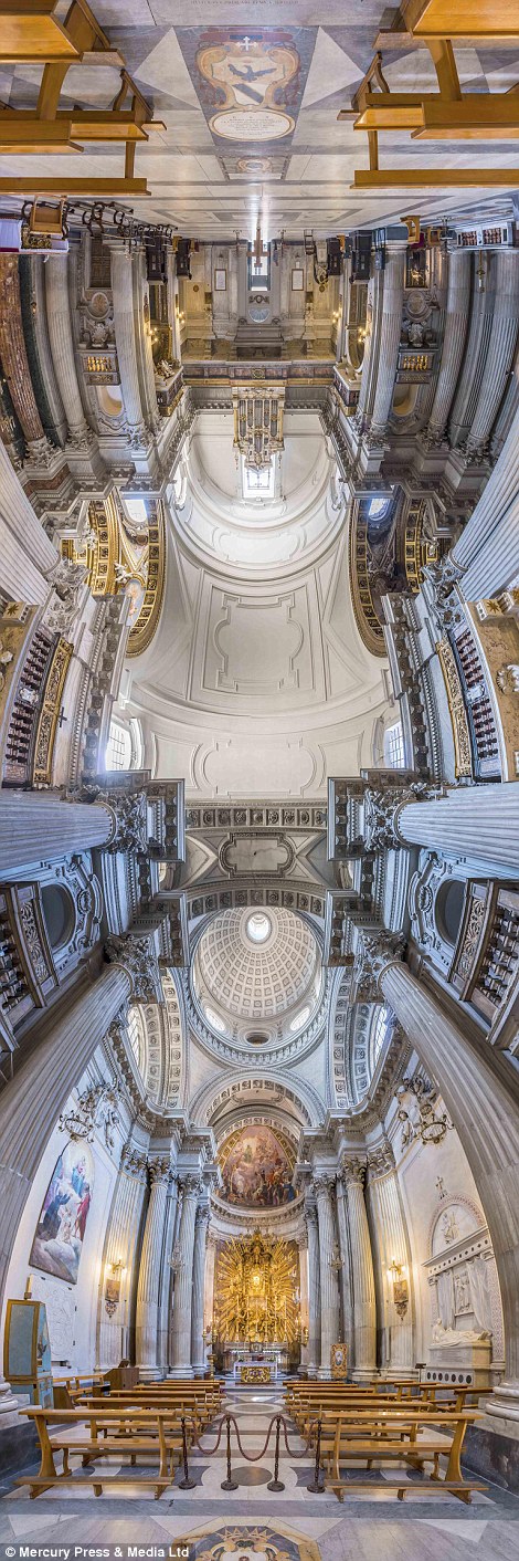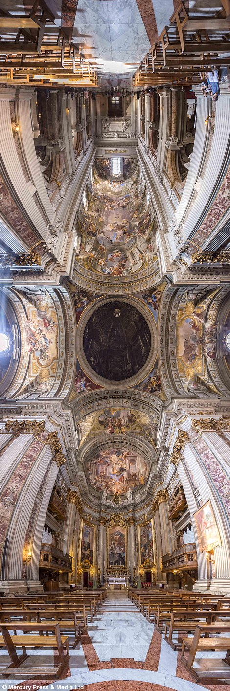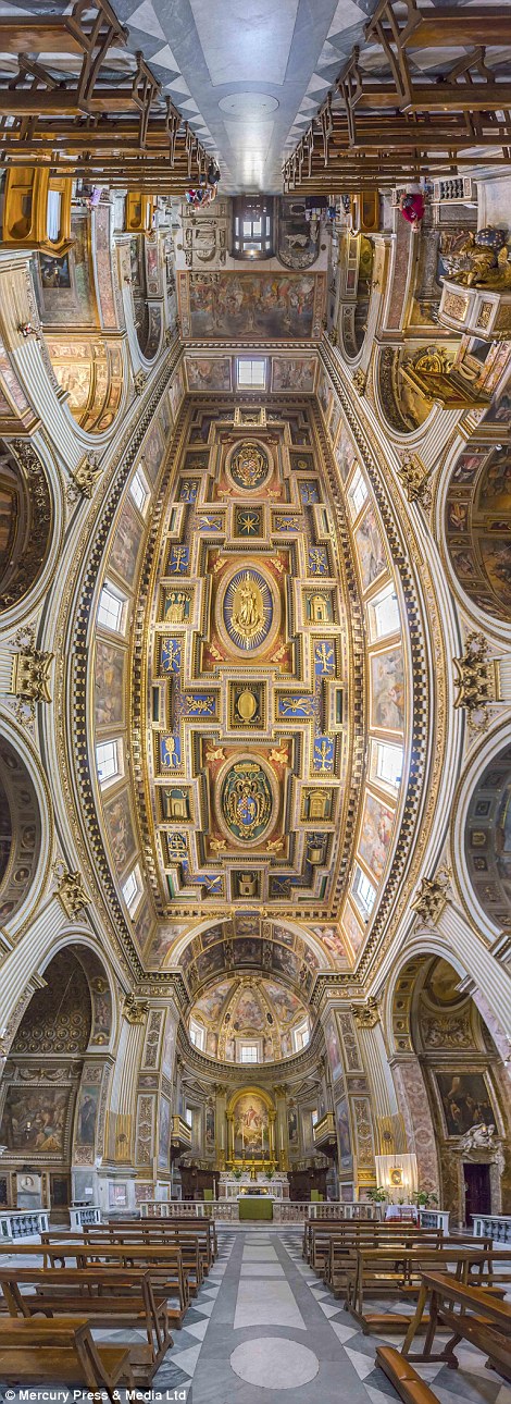 这些令人惊叹的照片显示了惊人的美在梵蒂冈(上)和教会在意大利,如罗马的圣玛丽教堂天使(下)