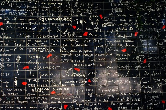 巴黎的蒙马特是一奇异的地方,这里不仅承载了太过关于这个城市里的名人故事,也容纳了许多可以代表巴黎的不同表情,如果在阳光很好的下午,走在蒙马特的那些小巷和斜坡,那是一种极好的享受,有奇趣无比的小店,各式各样的怪人,还有那些会说话的墙。而在蒙马特诸多的艺术墙中,最著名的一面墙当属"爱墙",由 511块深蓝色的长方形瓷砖贴成,墙上有着用三百多种文字写成的"我爱你",其中也包括了中文,其中的"爱"字是一个有心的繁体。尤其对于那些为着传说中的玫瑰人生而奔赴此地的人来说,爱墙便是他们流动的生命中最希望造起的那一面墙。