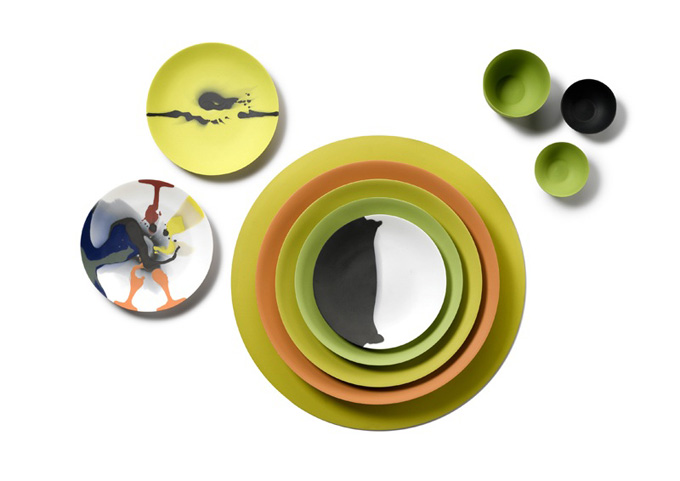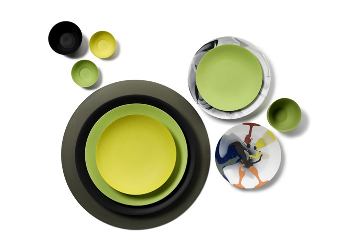 活泼的暖色调和内敛的冷色调带来的冲击与和谐,餐具陈设颇有禅意。