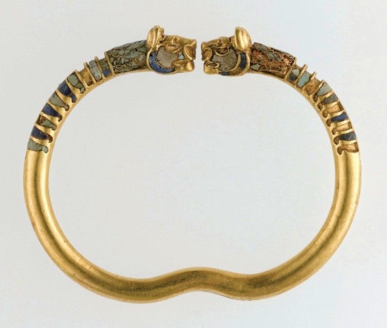 波斯帝国的双狮手镯(公元前4世纪。材质:黄金、绿松石、青金石)