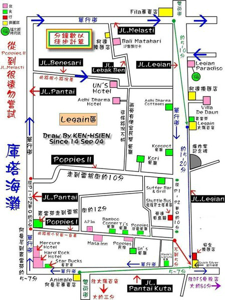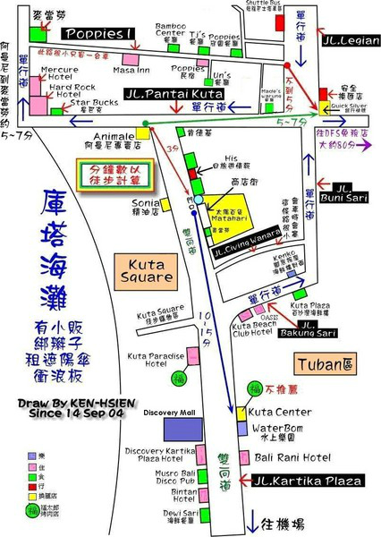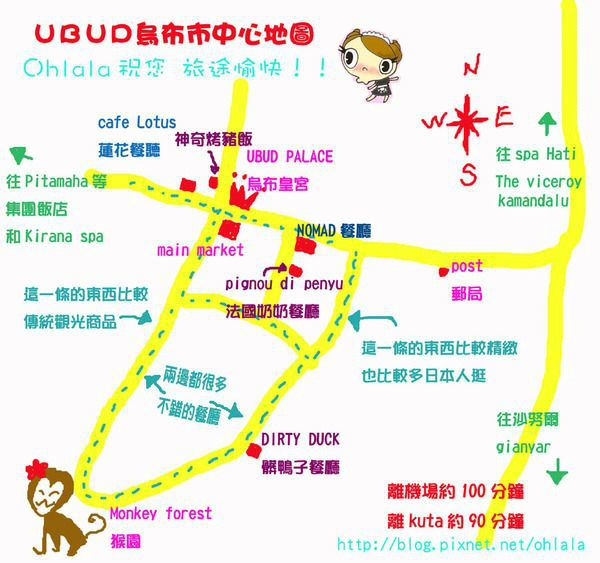 △ 地图:非常有用,我打印了巴厘岛地图(知道每个景点大概分布在哪里),网友手绘的库塔地图和乌布地图(很有用,有助于顺利找到自己需要去的地点),蓝梦岛地图;