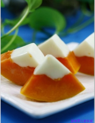 椰奶木瓜冻——椰汁香,木瓜甜,是一款非常不错的养颜甜品。