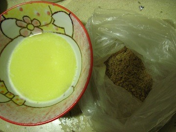 消化饼装结实的保鲜袋里用擀面杖之类的碾碎末,如下图