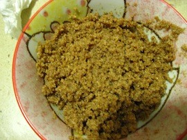 手洗干净,擦干,将饼干碎末倒入黄油里,用手抓匀~