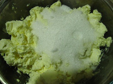 奶油芝士切小块,室温软化,用打蛋器打至光滑无颗粒,倒入细砂糖