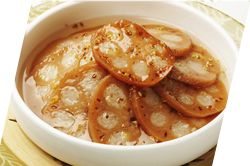 藕,是荷对已经过去的夏天的叹息;而桂花,是即将来临的秋凉向我们示意。这款桂花糯米藕,吃到的是藕,让我们陶醉、念念不忘的,却是那桂花的甜绵。