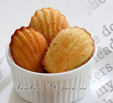 这句话就是在描写法国的玛德莲蛋糕。玛德莲蛋糕又称贝壳蛋糕,是最能代表法国的饼干之一,可是个人觉得它吃起来更像蛋糕一类的小点心。只是在法国传统意义上来说它归于饼干类。