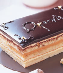 浸着咖啡酒糖液的杏仁海绵蛋糕层,柔软湿润,入口松化。香浓醇郁的法式焦糖咖啡奶油,未食其味、先闻其香,含在嘴里,萦绕在舌尖;再加上香纯的巧克力,就这样,杏仁、巧克力、咖啡、焦糖、奏响了歌剧院蛋糕华丽的乐章。这就是歌剧院蛋糕--欧培拉。