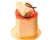 然而不巧的是,另一家糕点店Dalloyau 也销售着一款极为类似的超人气杏仁巧克力咖啡奶油蛋糕,另名L'Opéra、它的造型灵感来自法国歌剧院方方正正的形状,表面薄薄的黑色巧克力,像极了歌剧院里大舞台,而蛋糕表面也会缀上一片金箔,象征着歌剧院加尼叶(巴黎歌剧院原名),这种说法合理贴切,亦找不出任何漏洞,发展到后来,似乎还更深入人心呢。传统上,法国西点师傅会在蛋糕上写在自己的名字或者Opera,后来也有人在上面画个五线谱乐符,但无论是哪一款设计都充满了音乐、歌剧院的色彩。当然如果你什么都懒地弄,就那样干干净净在放着也未尝不可。欧培拉一般不会做其它围边之类的刻意装饰,这样方正的简约,从侧面就可看到它丰富的层次,对食客来说亦是一种感观上的享受,装饰多了,就画蛇添足,不像欧培拉了。