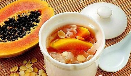 南北杏雪耳炖木瓜是一道四季皆宜的炖盅甜品,春天生津,夏天解暑,秋天去燥,冬天滋润,且可冷热两食。此味主料为新鲜木瓜、南北杏和雪耳,其中木瓜可帮助消化、抗菌解热;南北杏止咳润肺;雪耳则能滋阴养胃,滋味也特别温润香甜。和南北杏雪耳炖木瓜相似的炖盅甜品,还有莲子炖雪蛤膏以及炖燕窝,都是软软糯糯,清润无比。但要注意的是,若想靠这种食补来进行美容调理,必须按照规律吃上小半年才能见成效,不妨就此将吃甜品变成终身爱好,口福脸蛋两不误。