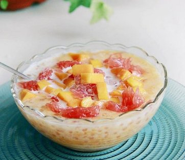 杨枝甘是西米露中最能体现港式精神甜品的,它在1984年由大名鼎鼎的利苑酒家独创,主材料包括沙田柚或西柚(依据季节选用)及芒果,还有西米、椰汁、鲜奶油(或淡奶)及糖。做法很简单,家庭亦可自制:用新鲜的柚子,取出果肉轻轻揉散,将芒果肉切丁与西柚、西米、椰浆和糖水拌匀。不少初尝者难免疑问,这道甜品从头到脚都不存在“杨枝”这种玩意儿,为何命名时没有芒果柚子的份,反而要用“杨枝”呢?于是一众美食家猜测,此“杨枝”乃是佛教出家人刷牙和刮舌的木片,每天朝早用来清新口气。兴许由于这道甜品香滑清甜,口感顺滑,加上西柚果粒酸甜爽脆,令人多吃也不会腻,像是经过“杨枝”清新口腔,又如久旱逢甘露般润甜,由此得名。