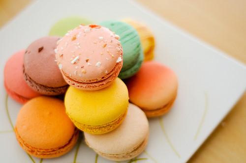 它由两片小圆饼合并在一起,这是20 世纪初,由巴黎烘焙师拉杜黑(Ladurée) 发明的,使这个小甜点不仅美味,而且时尚。拉杜黑利用三明治夹心法将甜美的稠膏状馅料夹于传统的两个盖子层,创作出了全新的马卡龙小圆饼。另外由于香料和色素的使用,恰到好处的湿度控制,使得新款马卡龙性质改良。