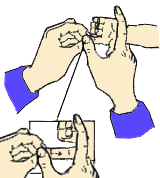 二、穴位:肺经(肺金) 位置:无名指掌面。 操作: ①补肺经:在无名指面上旋推,见中图,约补200~400次。 ②清肺经:面向指根方向直推,见右图,清200~400次。 主治:发热,咳嗽,气喘,胸闷,咽喉肿痛等. |